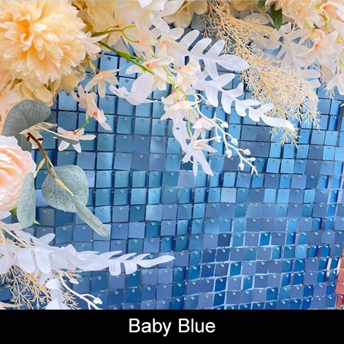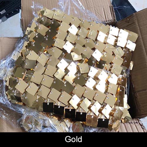 Each square is composed of 12"X12" panels that interlock, and each panel contains 10 by 10 lines mirror sequins (100 in total). It's very easy to set up.