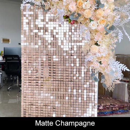 Our mirror shimmer panel backdrop is not just attractive: it will become the main attraction at your event. Wind activated, the panels come to life in a thousand mirror shimmers, throwing light and color clear across any room.